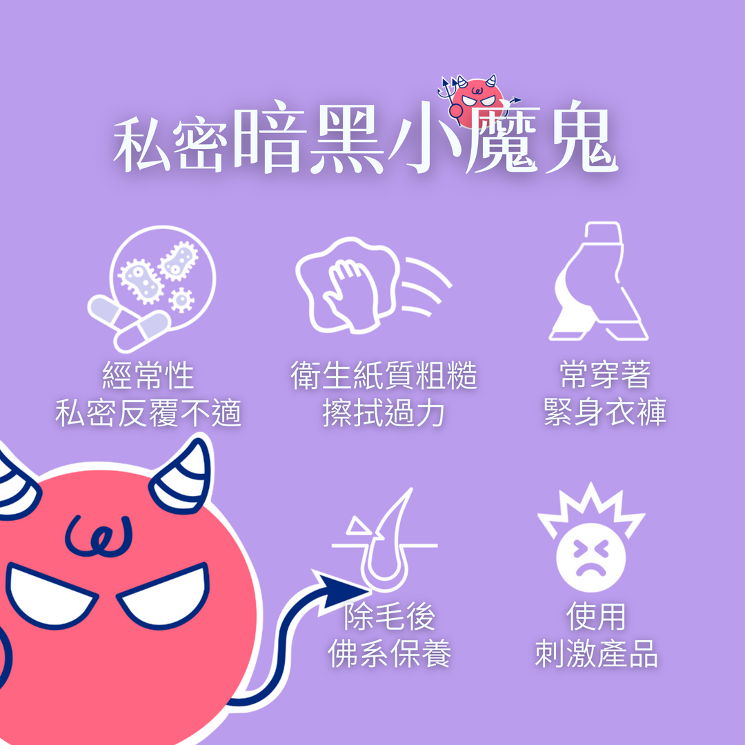 而私密肌膚雖然不會受到紫外線威脅,但長時間的衣褲摩擦、錯誤的保養或生活習慣等,都可能加肌膚黯黑、粗糙的機率。